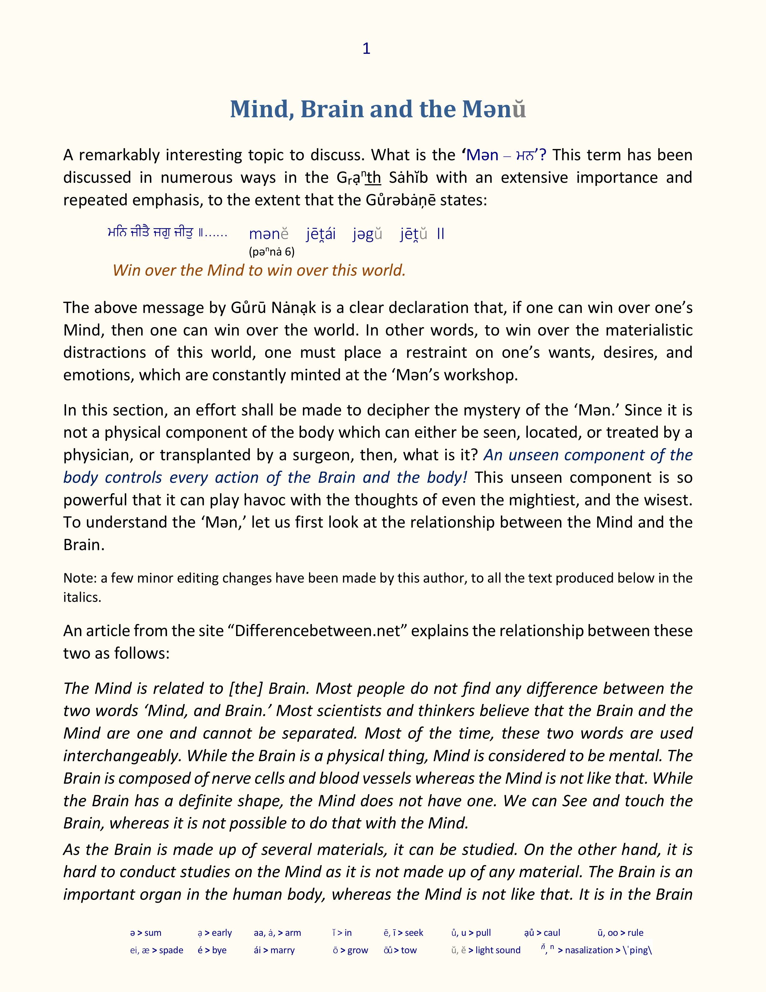 Mind, Brain and the Mǝnŭ
