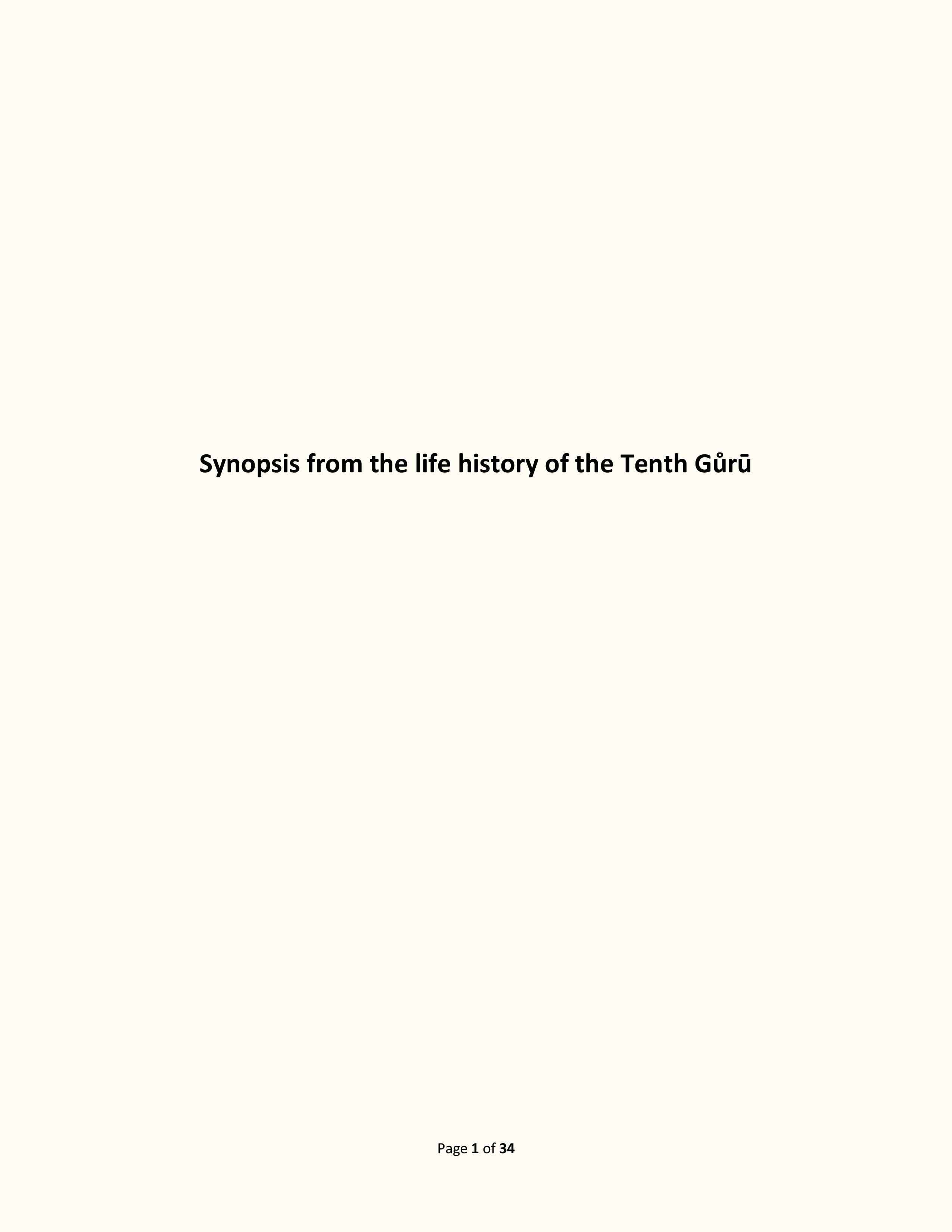 From the life sketch of the Tenth Gůrū