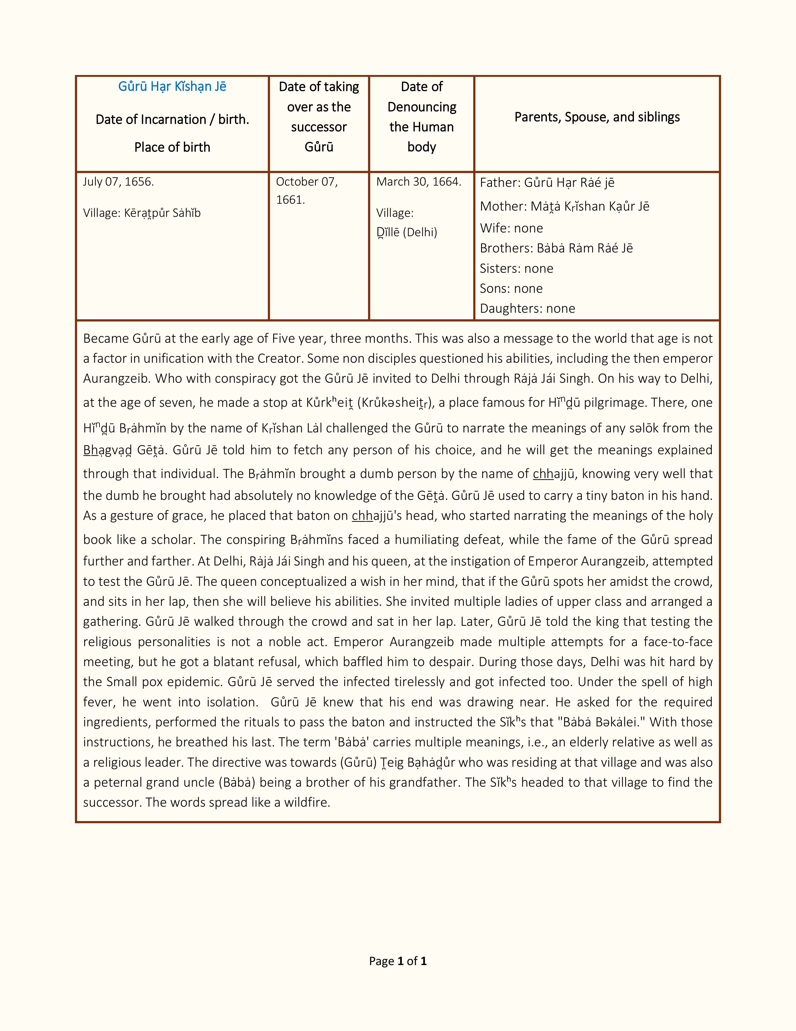 The Eighth Sĭkʰ Gůrū • 1656-1664 CE