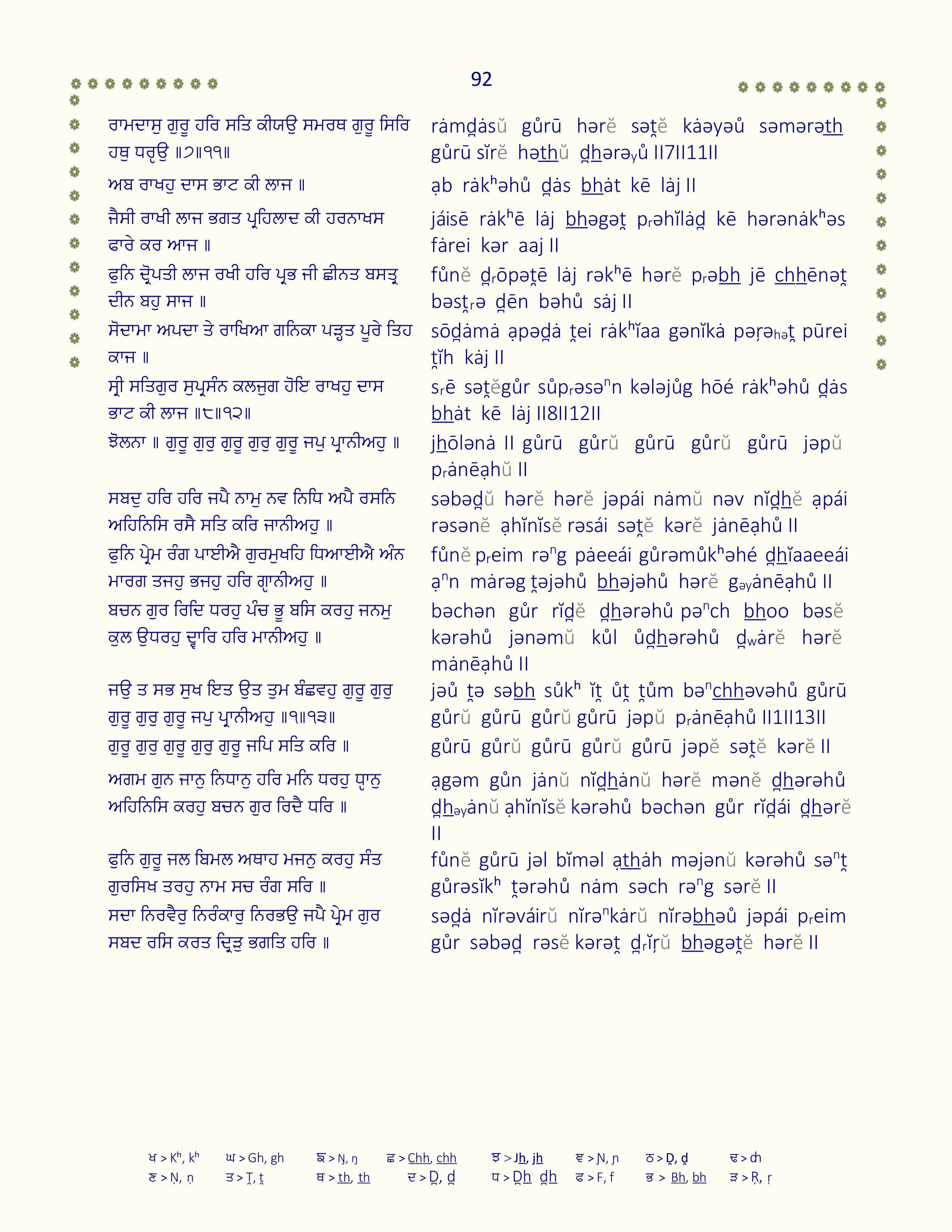 Detailed line by line color-coded transliteration for pǝnnȧ 1351-1400 of Sri Guru Granth Sahib. Enhanced readability and pronunciation accuracy for the sacred Gůrǝbȧņē text.